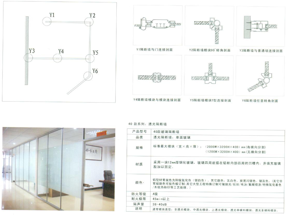 40款單玻高隔斷,隔墻厚度為40mm,它也是種經濟款,價格相對實惠,適合于預算低,實用為主又有一定要求的客戶群。
