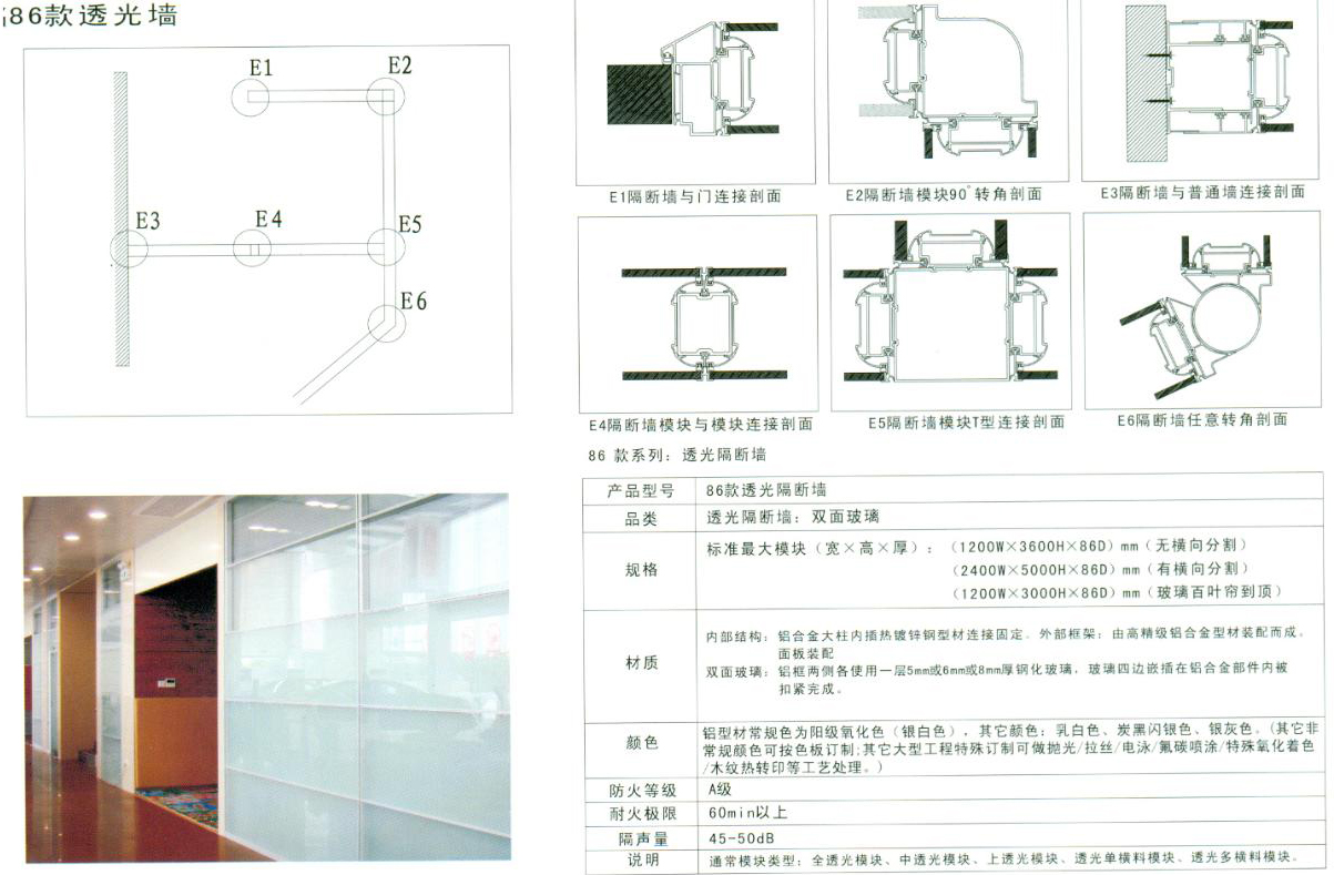 86高隔斷是最為成熟的產(chǎn)品,已經(jīng)做過很多工程案例,深得廣大客戶認(rèn)同和喜愛,它的任意拆裝,靈活多變地空間劃分組合,自由吊掛隨意的材質(zhì)搭配,把辦公空間的藝術(shù)之美演繹的淋淋盡致。 鋁框中間橫向壓條為17mm,豎向壓條為13mm,上下槽為65mm,左右壁槽為:65mm,側(cè)柱為20mm。
