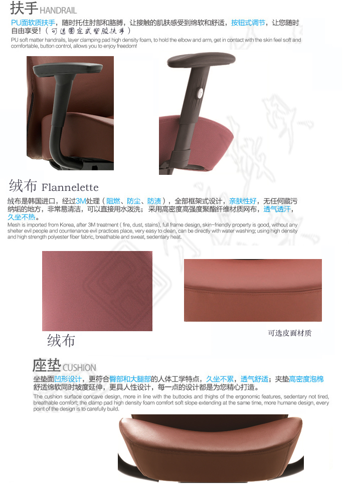 * PU扶手,可作升降,水平,前后調節