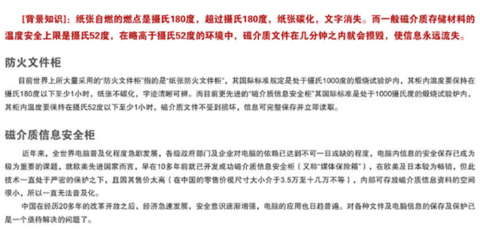 2,磁碟防火抽屜主要用于主管部門,財(cái)務(wù)室、檔案室、設(shè)計(jì)室和銷售部門儲存單位重要的信息資料,如:磁盤、磁帶、錄音帶、錄像帶、膠卷、微縮片、X光片、U盤、CD/VCD等;